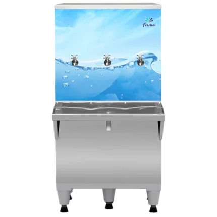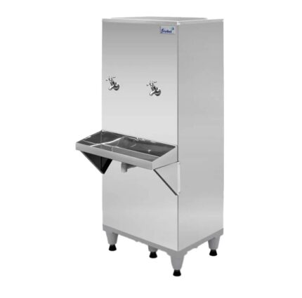 Em até 10x de R$ 225,28 sem juros À vistaR$ 2.027,52no Pix Bebedouro Industrial de Coluna B50 em Aço Inox Polido 50L c/ 2 Torneiras – Frisbel 110v