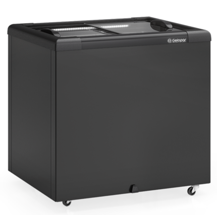Em até 10x de R$ 245,00 sem juros À vistaR$ 2.204,99no Pix Freezer/Conservador Horizontal All Black GHD-200 LB PR- Dupla Ação 210 Litros Led Perimetral – Gelopar