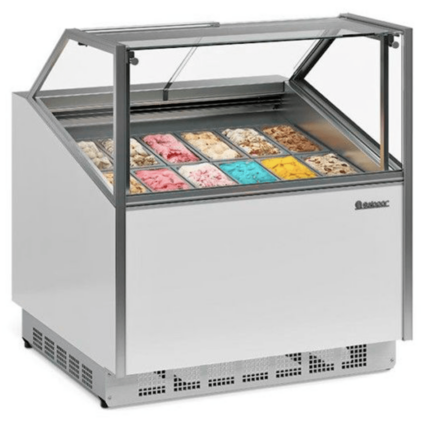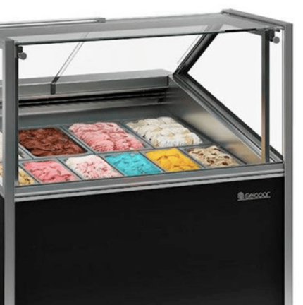 Em até 10x de R$ 2.689,90 sem juros À vistaR$ 24.209,10no Pix Sorveteira / Expositor para Sorvetes de Massa GESG-12 BR com Led vidro duplo laminado Gabinete com rodízios e pés niveladores – Gelopar