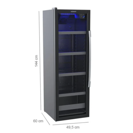 Em até 10x de R$ 210,00 sem juros À vistaR$ 1.890,00no Pix Cervejeira Expositora 200L Blue Light Porta de Vidro Invertida EXPVQBL200PI – Venax Preto