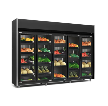 Em até 10x de R$ 763,16 sem juros À vistaR$ 6.868,43no Pix Refrigerador Vertical Auto Serviço Hortifruti 1960 litros All Black com Led Frost Free GEAS-5 LB PR 5 Portas Gelopar