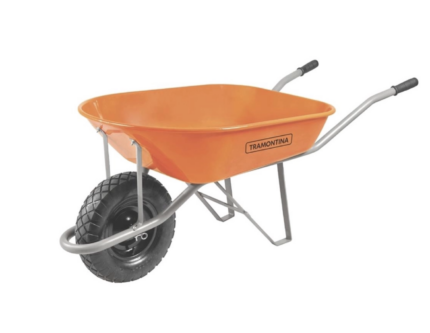 Carrinho de mao braco metalico cacamba met extrafunda laranja pneu em borracha tramontina