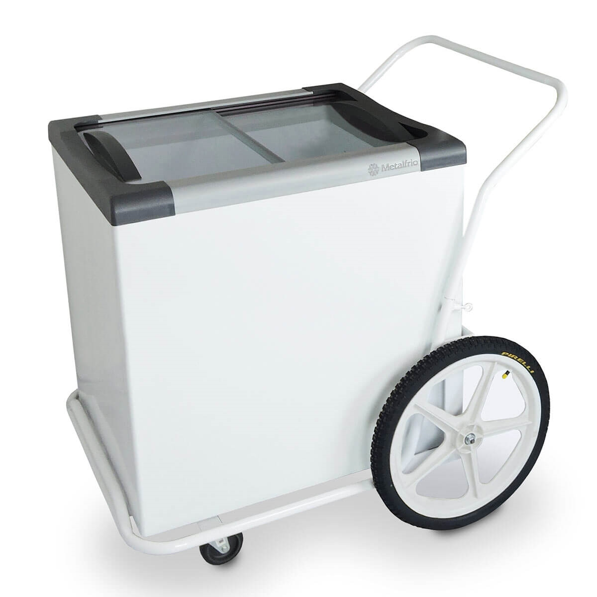 nossos carrinhos são equipados com um freezer de 180 litros de capacidade, desempenho profissional e sua estrutura construída em tubos de aço com pintura eletroestática.