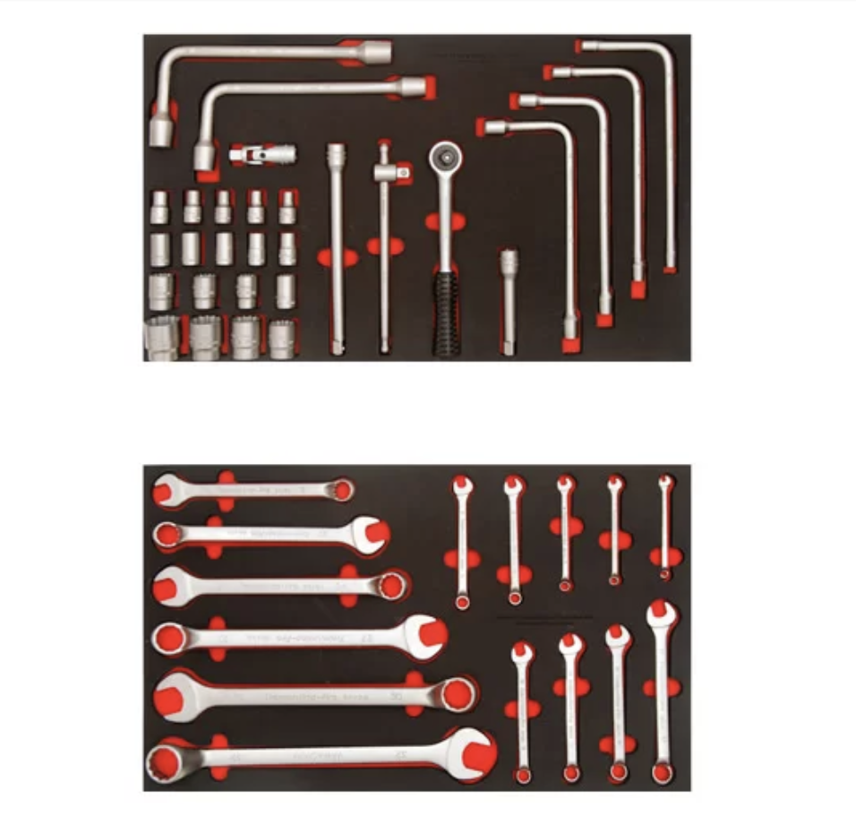 – 18 Soquetes estriados 1/2″: 8 – 9 – 10 – 11 – 12 – 13 – 14 – 15 – 16 – 17 – 18 – 19 – 21 – 22 – 24 – 27 – 30 – 32 mm