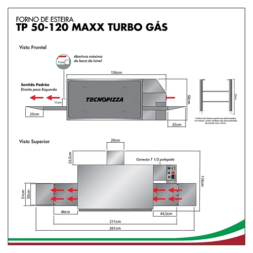 FORNO TECNOPIZZA ESTEIRA TP 50-120 MAXX TURBO A GÁS
