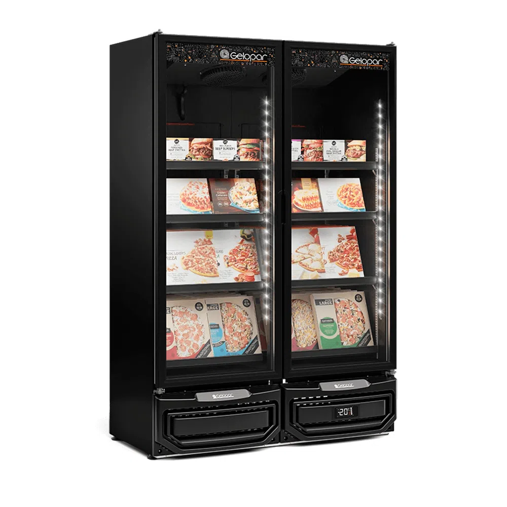 Fabricado interna e externamente em chapas de aço pré-pintado preto, o design all black em conjunto com o LED Perimetral (com interruptor) dá mais destaque aos produtos expostos, contando ainda com a porta em vidro baixo emissivo com aquecimento e fechamento automático – gerando economia de energia para seu estabelecimento.
