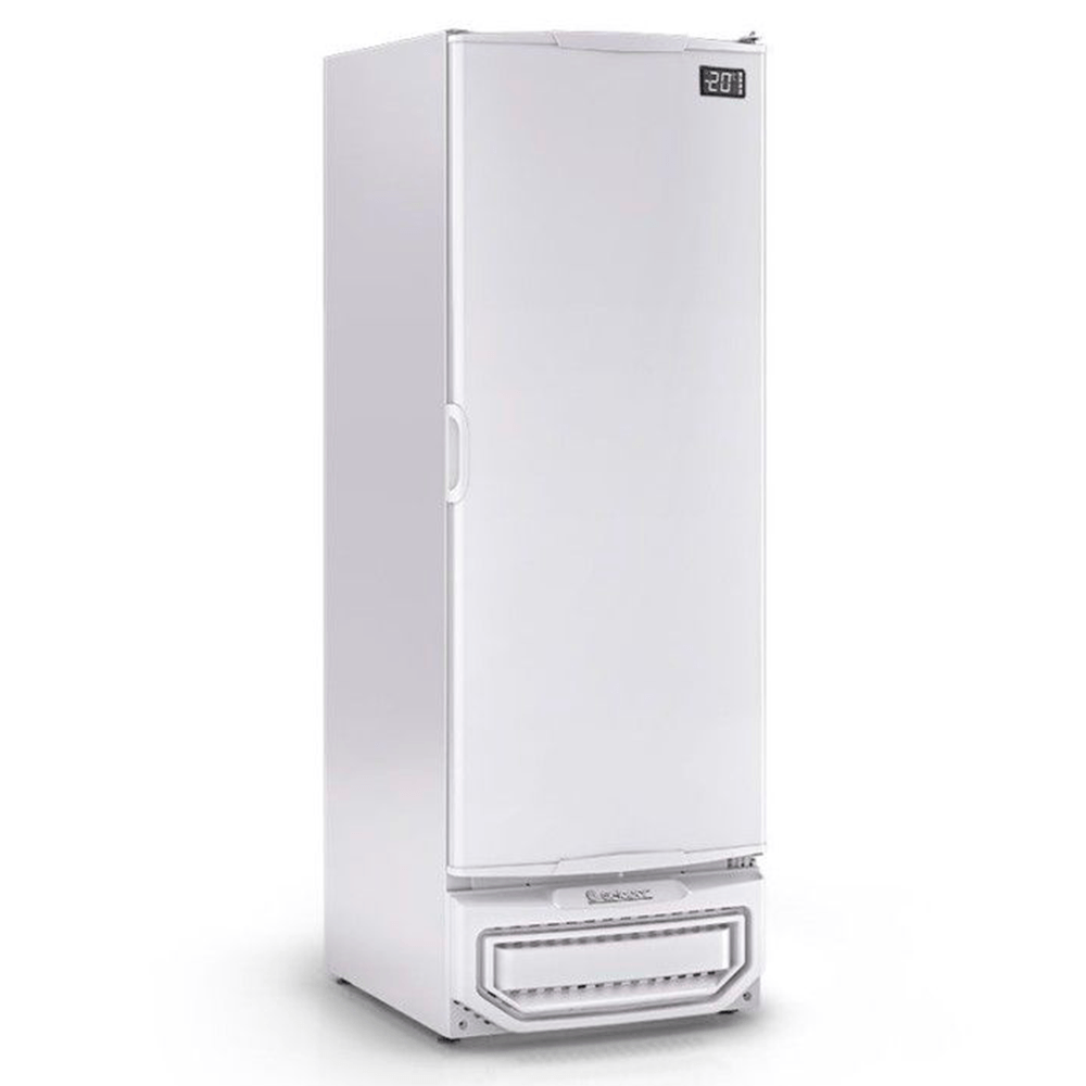 Sua temperatura é ajustável por controlador eletrônico: P1 -20°C; P2 -18°C; P3 -15°C; P4 -12°C, com indicador de temperatura e degelo automático (frost free). Ele acompanha ainda 3 prateleiras reguláveis e inclináveis, além de estrado aramado.