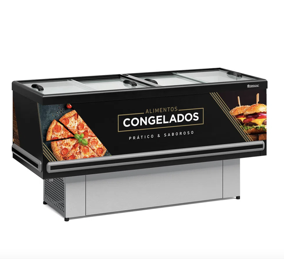 Ilha Expositor p/ Congelados e Resfriados GESV-190RPR Standard Preta Vidro Reto Deslizante Gelopar
