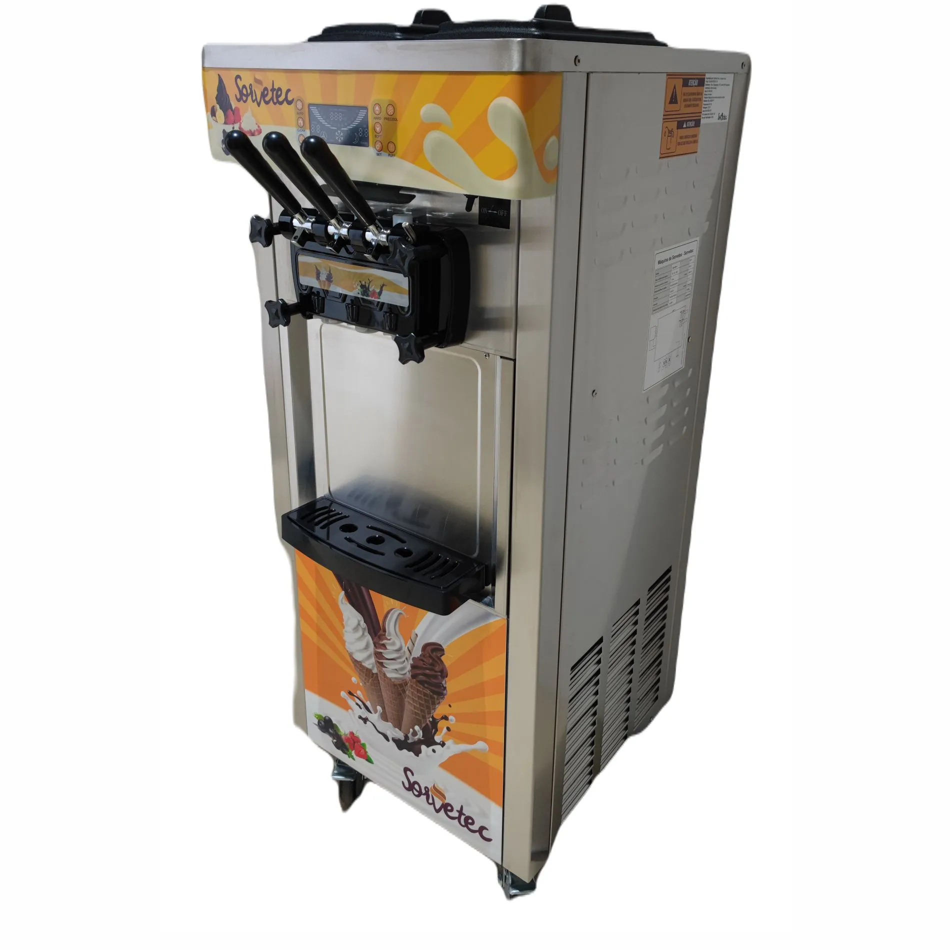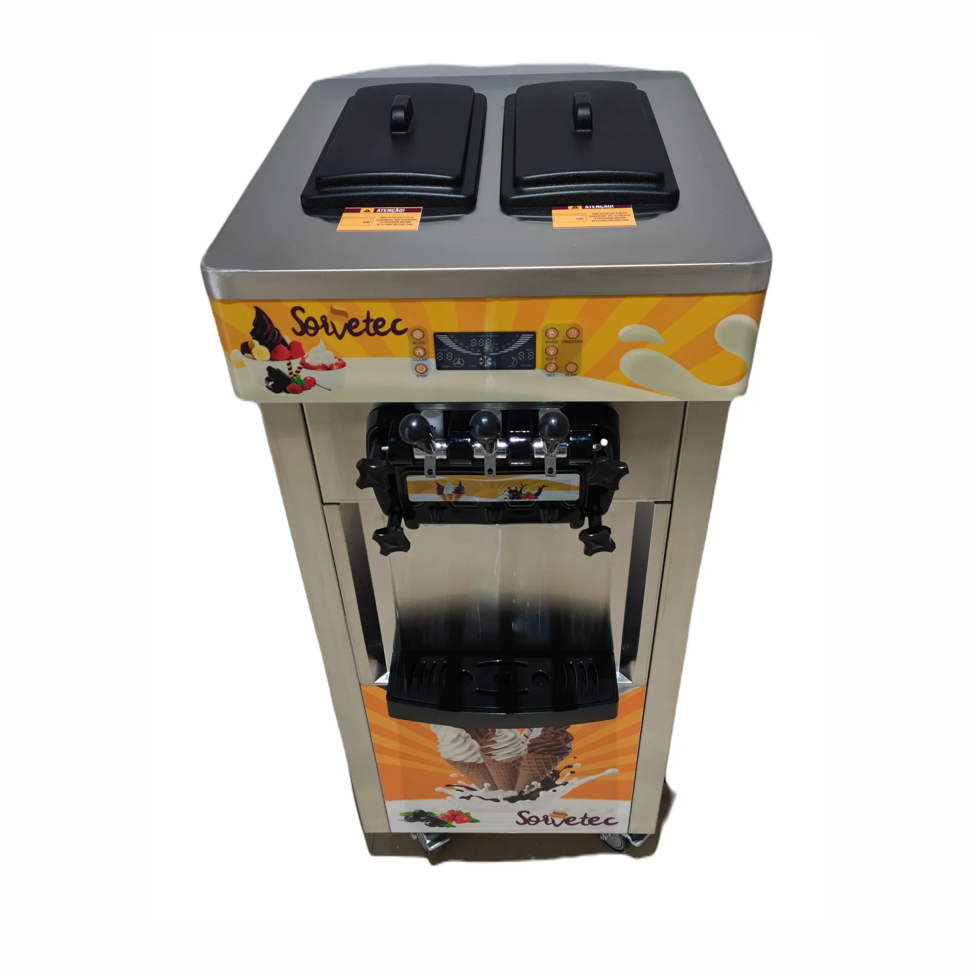 A Máquina de Sorvete Expresso 825B-P-Y com Conservação Noturna da Sorvetec possui 3 bicos e uma exclusiva conservação noturna, o que evita desperdícios.