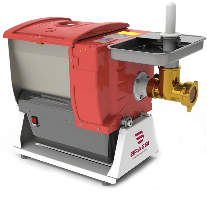 Opcionais:kit para moer carne, pino central, navalha, chapa, bocal 9 em ferro fundido com banho de estanho e bandeja em aço inox.