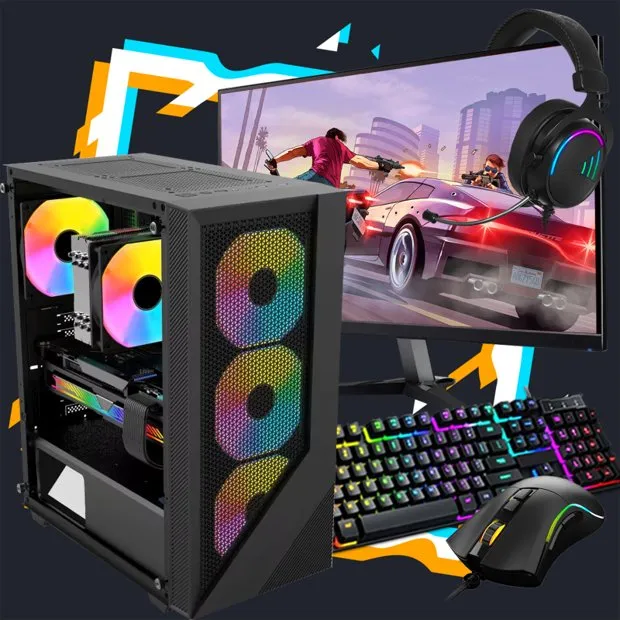 Pc Gamer Start Completo / AMD Ryzen 5300G / 16GB DDR4 / SSD 240GB / Monitor LED / Headset / Teclado e mouse
