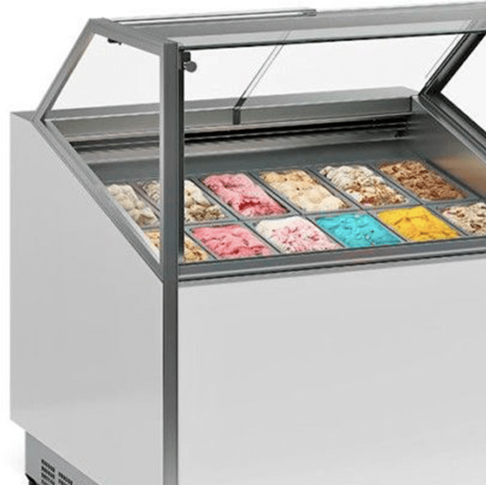Sorveteira / Expositor para Sorvetes de Massa GESG-12 BR com Led vidro duplo laminado Gabinete com rodízios e pés niveladores – Gelopar